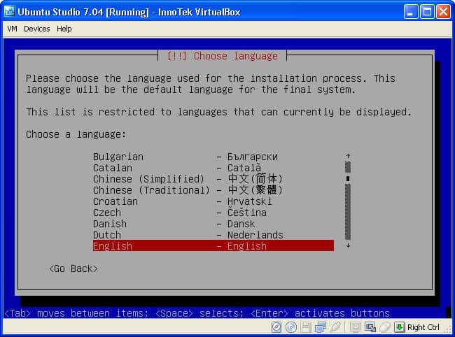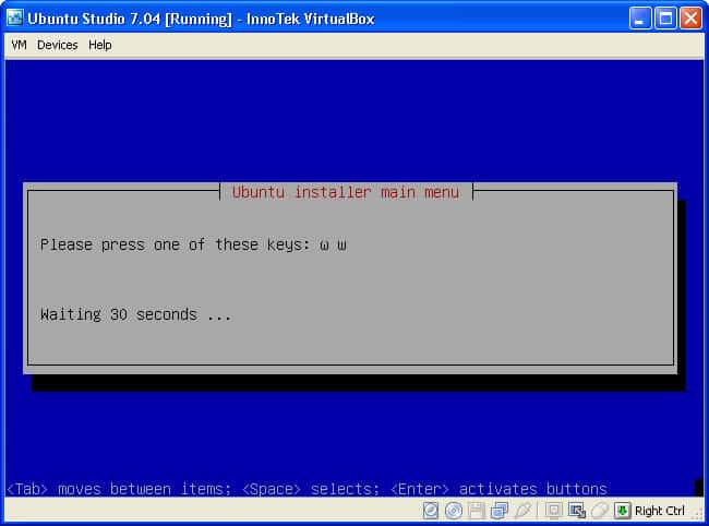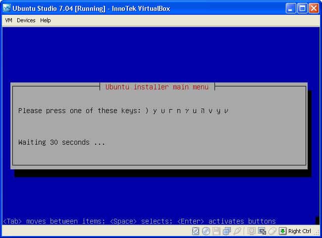 - Click inside the VirtualBox window, make sure that Install Ubuntu Studio is highlighted, and hit Enter on your keyboard.