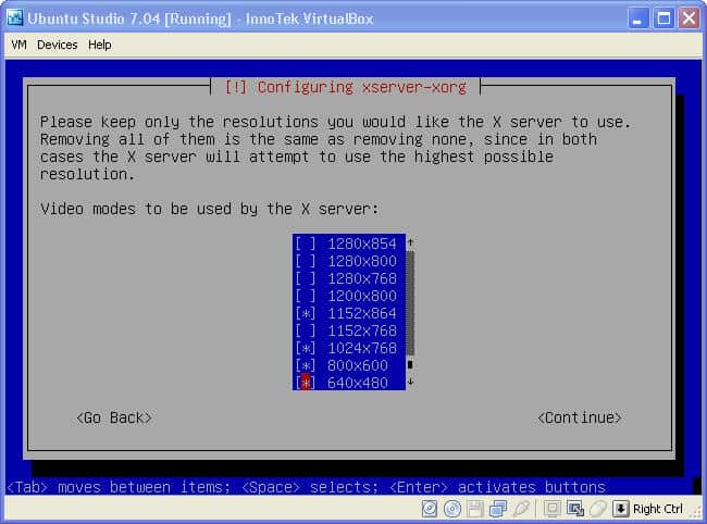 - Now you’ll select the resolutions you want available to Ubuntu studio.
