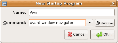 - Enter Awn as the name and avant-window-navigator in the Command field.