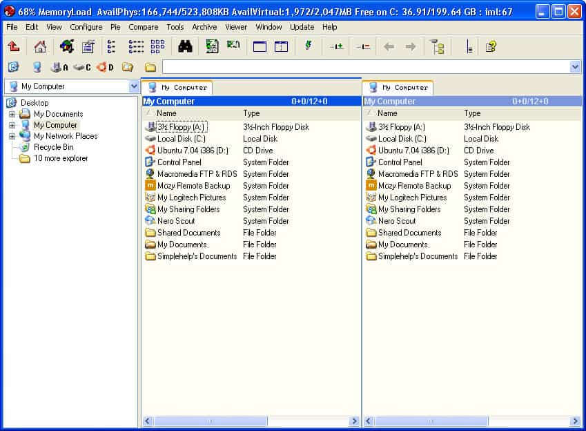 The BEST damn file manager around. Kicks File Manager’s and Windows Explorer’s butts! Among its many features is that it’s also an FTP program. What it can do that most other explorer replacements can’t do is give a “dual pane horizontal” (technically a quad-pane horizontal) interface ala the old Windows 3.1 File Manager. The only negative is that it is not freeware. I really wish that I could find a freeware replacement for it, preferably one that is still being updated. The program works wonderfully on Windows 95/98/ME/2000/XP. It even worked great in XP x64, but it couldn’t see some system folders that Windows Explorer could. Since it wasn’t the only program that couldn’t see them, I think this is a conflict between a 32-bit app and the 64-bit OS than a fault of the program.