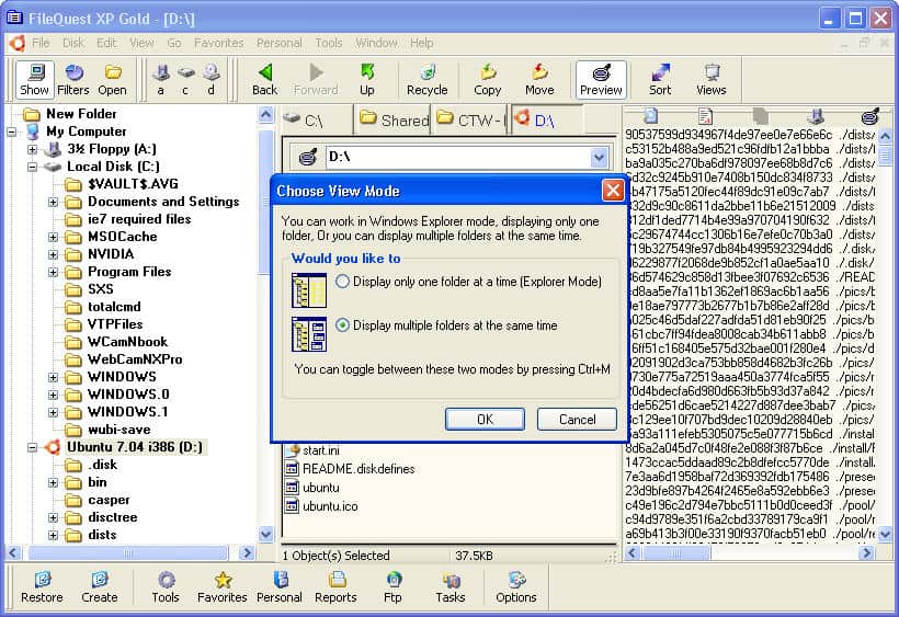 For $67.95 I want it to do my dishes. It doesn’t. It does include a free copy of FastOpen XP, which appears to be some kind of Windows launcher (I didn’t download it). It’s also worth noting that there is another version of FileQuest, called FileQuest XP (drop the Gold). It’s less expensive, but doesn’t include FTP support or Preview files on the fly. On 06/16/07 Piquest (the FileQuest company) announced that there was now a beta version for Vista, and that they would be doing monthly versions, rather than 1-2 updates per year. So that does inspire some hope. Otherwise, I found FileQuest XP Gold to be rather slow and none of the features jumped out at me as being truly unique. It would have been cool if Tooltips (when you hover your mouse over a button a description appears) were enabled, as some of the buttons are a bit confusing/misleading. Also, something that may be influencing my somewhat negative review is that it constantly told me that my System Time and Date were not set correctly. Yes, they are (BIOS and all). The 50 day trial is a positive – if the screenshots lead you to believe this is a program worth checking out, at least you have quite a long time to give it a spin before you commit to the purchase.
