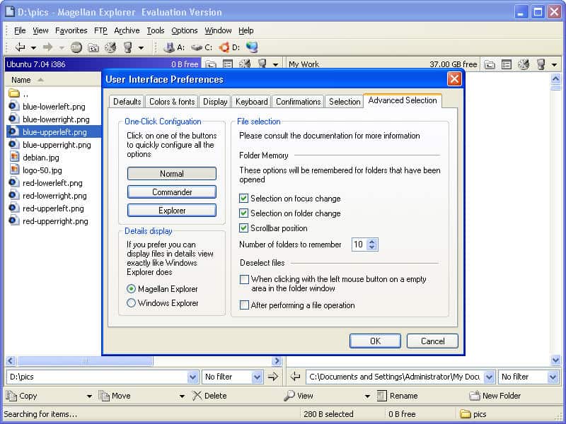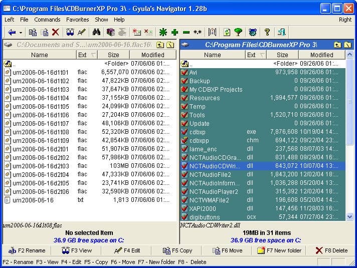 Gyula’s Navigator is a 32-bit Norton Commander clone for Windows. So if you’re a fan of the commander-style file managers, this one is absolutely worth a look. It’s low on system resources, a 2MB install, and fairly customizable. The price is absolutely great (free). There’s a delay when using the mouse-hover feature, but that can be turned off anyway (which I did right away). The toolbar icons are straight forward and easily recognizable (unlike some other file managers). And there’s a forum if you ever need help or want to offer suggestions. In the most recent post on the forum (April of this year) Gyula mentions that he is indeed working on a new/updated version.