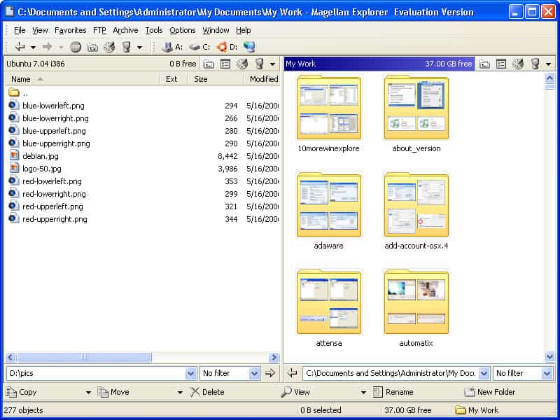 As seen from the above feature list, Magellan Explorer does a lot. And it’s visually appealing. So what’s the drawback? It hasn’t been updated since October 7th, 2005. Though I didn’t test it on Vista, my guess would be that it doesn’t work. But you can try (and let me know via the comments!). The online documentation is detailed, helpful and straight forward, but if you were hoping for support forums you’d be out of luck. The system resources used by Magellan Explorer are pretty low, and it’s very speedy/responsive. If it was still being updated (and/or had tabs), I think I’d have given it 4 stars. If I had reviewed this software in 2005, I might have given it 4 and a half. With all of that said, it’s way better than the default Windows Explorer.