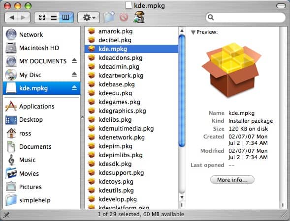 - Locate the kde.mpkg file and double-click it (it will be just kde if you hide extensions).